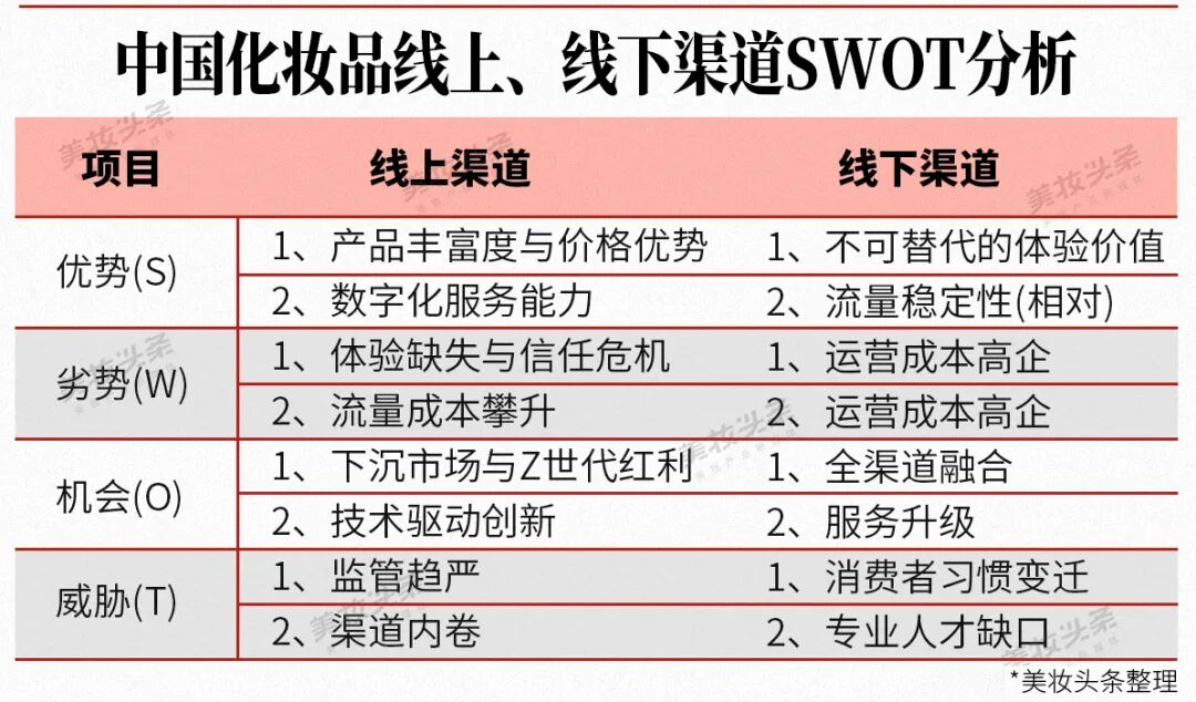 目前,中国化妆品行业正经历显著的渠道“围城效应”:传统线下品牌受制于高租金与客流分散,加速向线上转型;而线上品牌则面临流量红利消退与价格体系混乱,纷纷布局线下渠道。这种“双向奔赴”现象,本质是行业在流量成本、消费体验与渠道控制权等多重博弈下的战略调整。