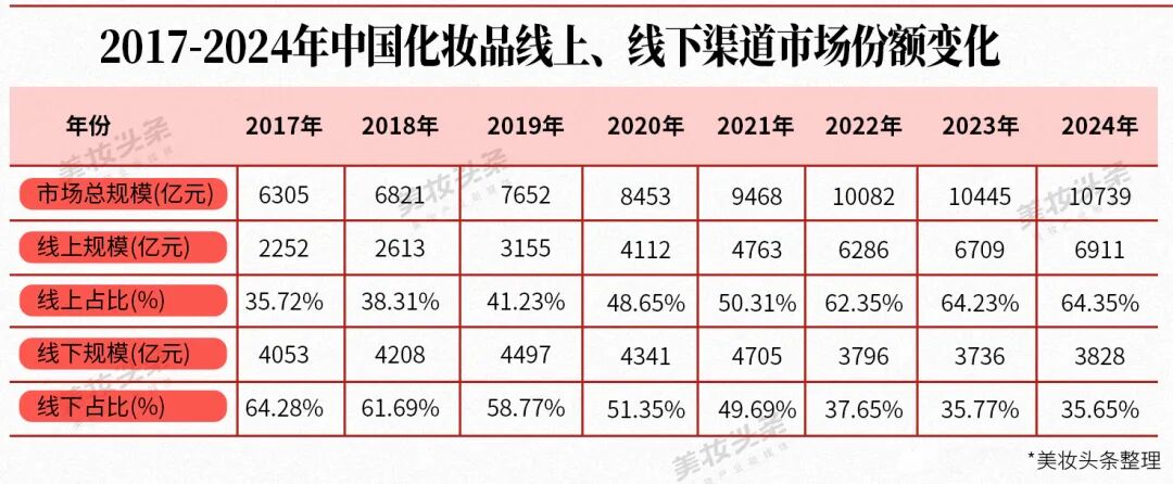 《美妆头条》记者梳理发现,中国化妆品市场线上占比70%、线下30%的格局形成,主要源于三大驱动因素: