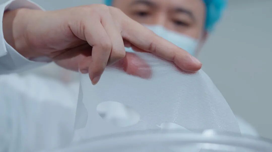 贝豪相关负责人认为“面膜布是功效的一部分”,从研发极致轻薄透的精华液载体到引领功效膜布发展,贝豪始终坚持从膜布的基础研究出发,让编织膜布的纤维具备护肤功效。