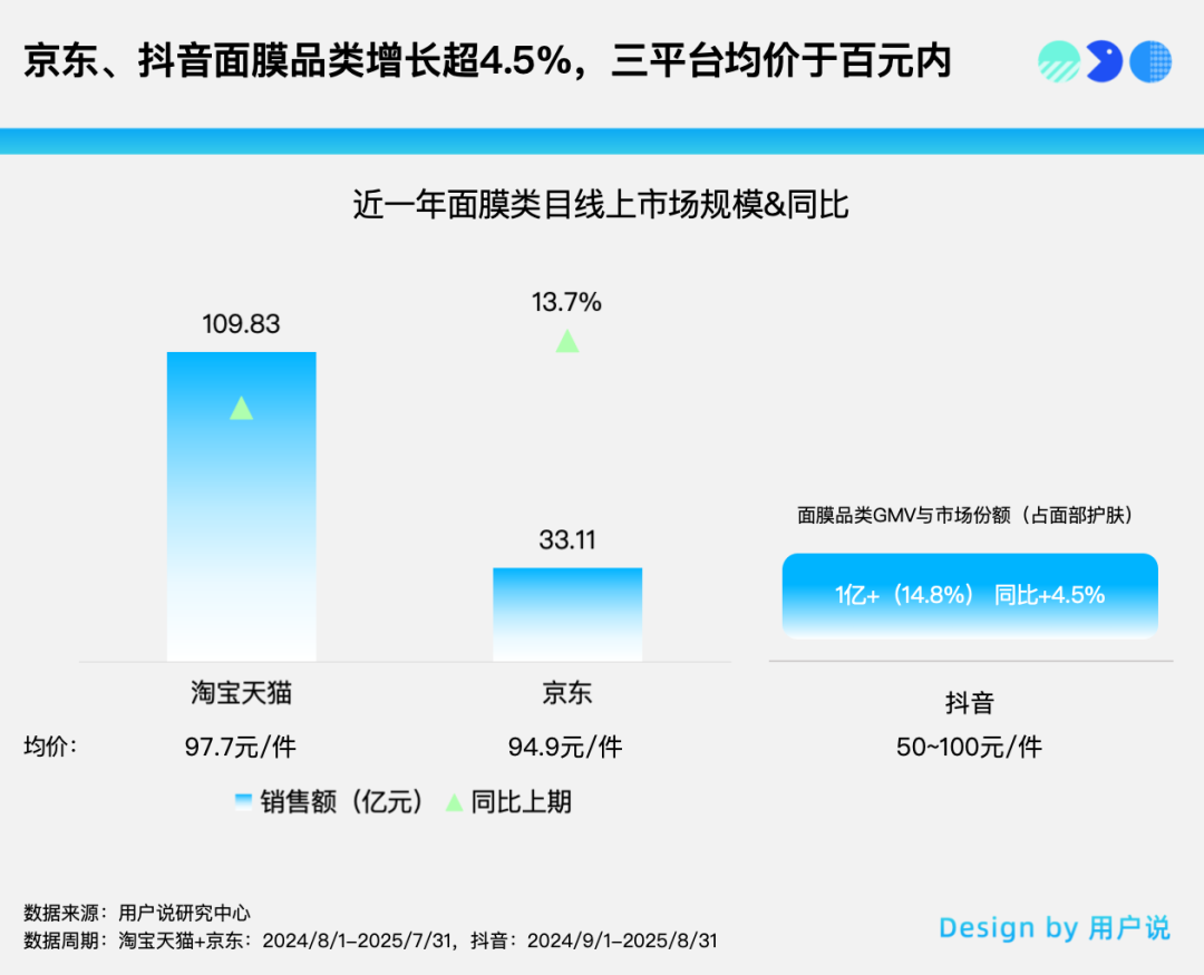 总体来看,淘天热销产品定位中高端路线,抖音也展现出了高端市场的发展潜力。也就是说,消费者是可以接受价位高的面膜的。