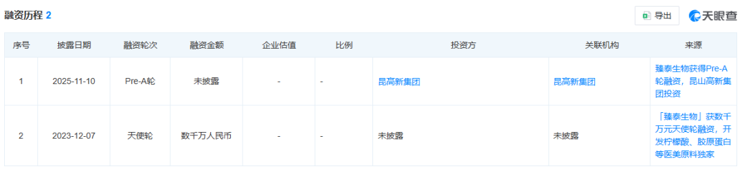 除了合成生物赛道,外泌体科技与医美材料领域的融资同样值得关注。11月完成近亿元融资的恩泽康泰,专注于外泌体赛道,建立了具有自主知识产权的三大外泌体研究与应用平台,并全面聚焦外泌体三大平台建设,解决产业化瓶颈。专注于医美原料研发的创新型生物科技企业臻泰生物也成功获得Pre-A轮融资,投资方为昆山高新集团。本轮融资将主要用于推进柠檬酸材料、胶原蛋白及其复配产品的研发进程,并加快重组胶原蛋白等核心技术的产业化落地。