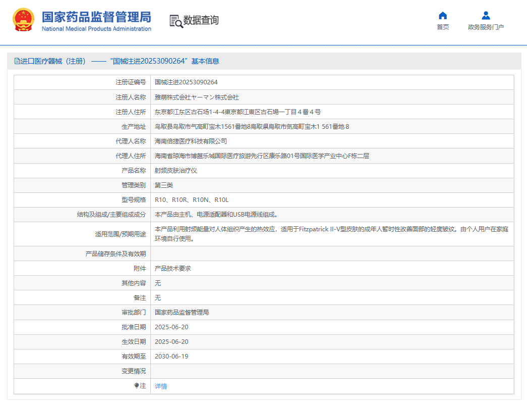 2022年,国家药监局发布《关于调整〈医疗器械分类目录〉部分内容的公告》,明确射频治疗仪、射频皮肤治疗仪类产品按照第三类医疗器械管理。自2024年4月1日起,该类产品未依法取得医疗器械注册证,不得生产、进口和销售。