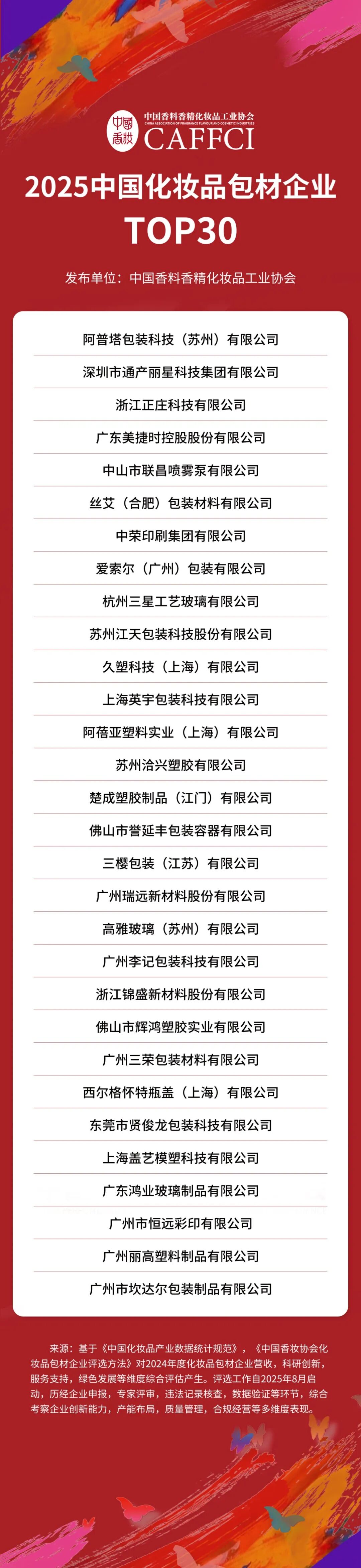 《2025中国化妆品包材企业30强》榜单完整名单: