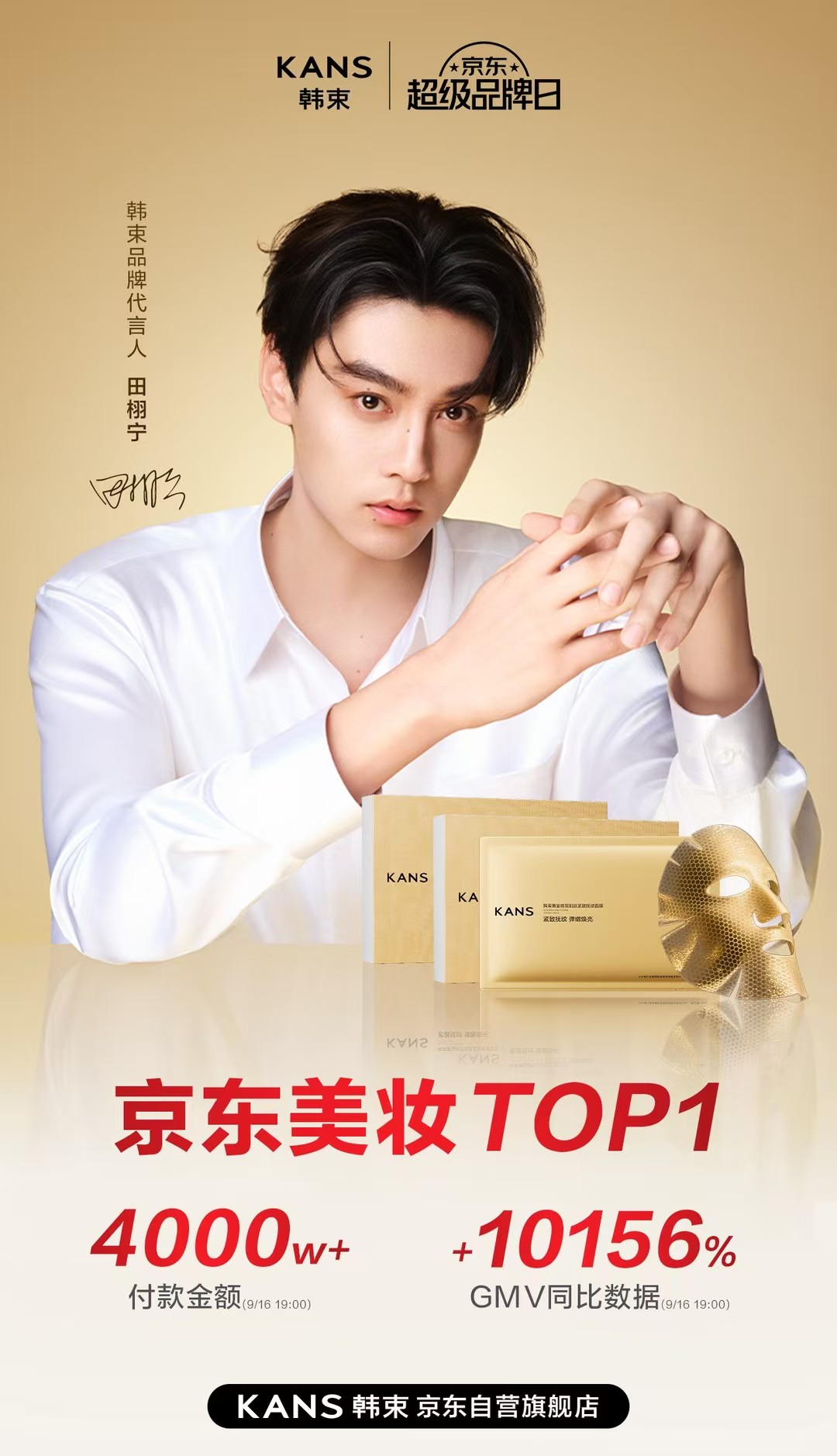 其中,新晋顶流田栩宁以一人之力,印证了明星的流量转化效能。如韩束官宣代言人田栩宁后,5分钟销量破2000W+,强势登顶京东美妆TOP1,全渠道销售额一度突破6000万。巴黎欧莱雅也首次将田栩宁破格提为品牌代言人。