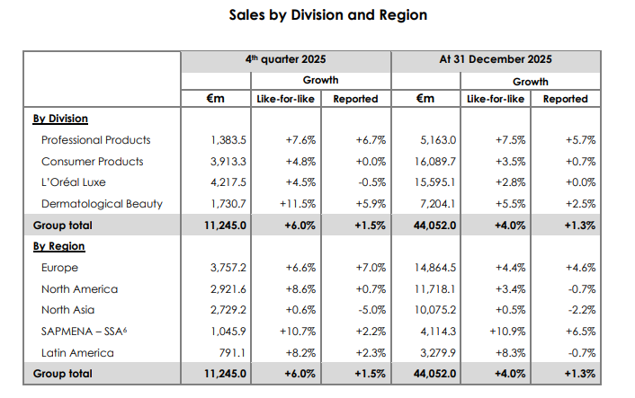 大众化妆品部作为欧莱雅第一大部门,2025年全年销售额实现160.89亿欧元,同比增长0.7%,全年增长呈现逐季加速态势。