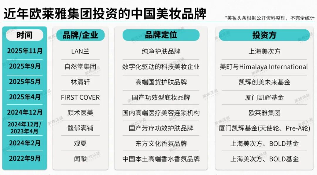 2025年,欧莱雅在中国的投资比往年密集得多。但现在的投资已经不是粗暴的收购替代,而是通过资本纽带做“柔性加入”和生态共建。
