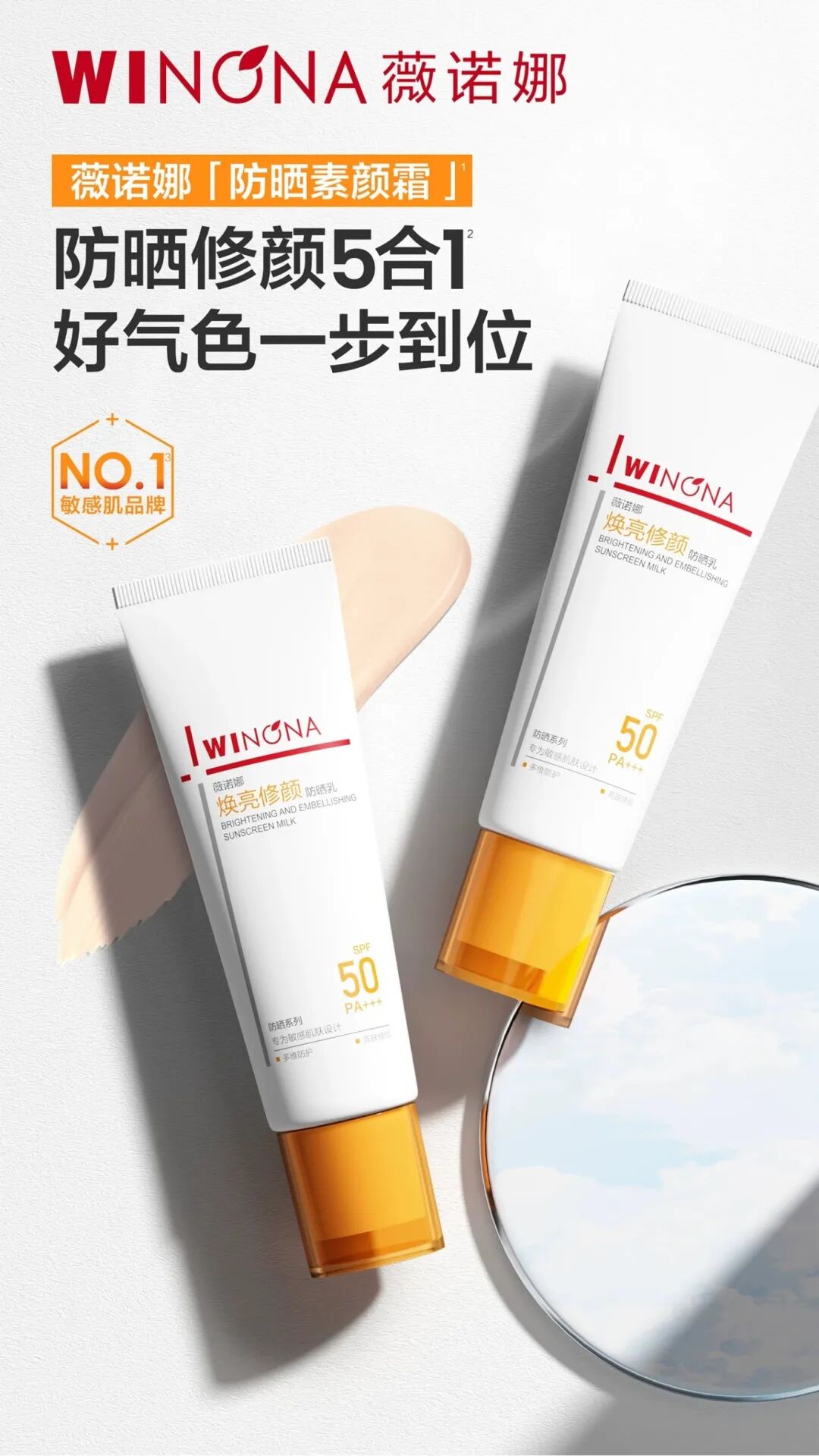 连续5年稳居中国敏感肌护肤品市场销售额第一的薇诺娜,瞄准有修饰肌肤需求的人群,推出了焕亮修颜防晒乳,该产品兼具素颜霜与润色妆前的多重功效。