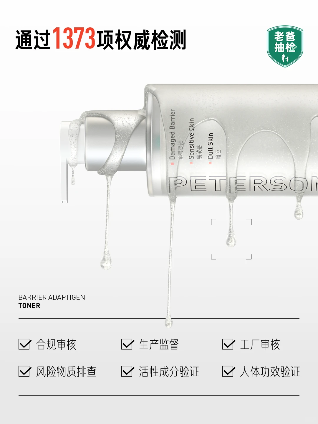 老爸评测则对厚脸皮水3.0进行严苛的实验测试,并对产品生产环节实地考察,共计通过1373项检测后,授予该产品使用“老爸抽检”标志。