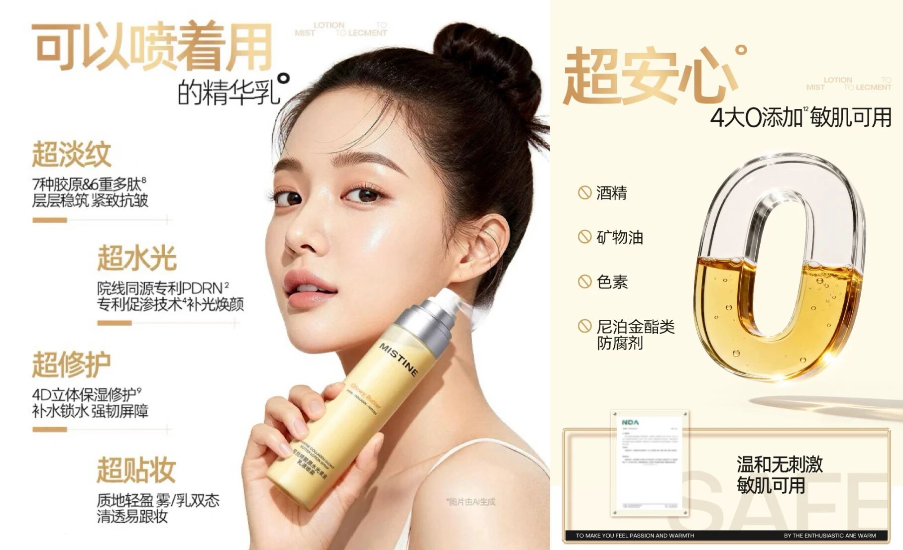 在两大前沿技术的协同下,MISTINE蜜丝婷实现了从被动防御到线粒体级主动修护的跨越,并推出覆盖全场景的抗光损解决方案,成为全球首个将自研AI大模型系统化应用于抗光损研究的美妆品牌。