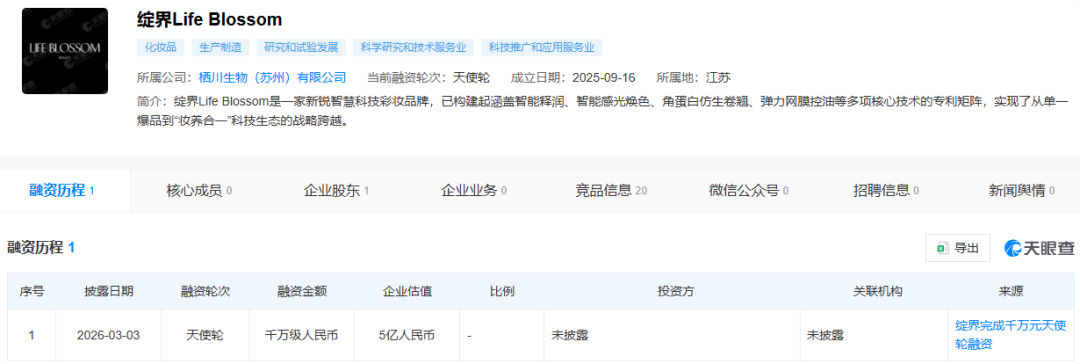 在资本寒潮持续笼罩、新消费品牌接连哑火的当下,这则“成立不足半年即获千万融资、估值达5亿”的消息,迅速引发美妆行业与资本市场的关注。