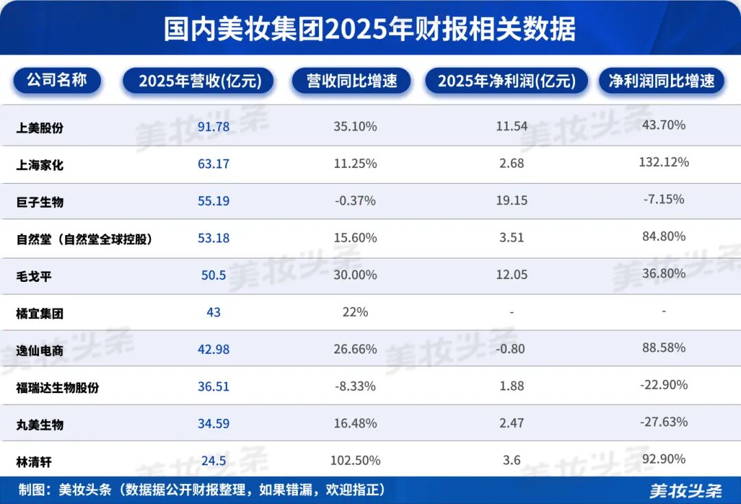 近期,上美股份、毛戈平、橘宜集团、逸仙电商等国内美妆领军企业,均已发布了2025年财报。令人欣喜的是,这些企业及品牌都录得双位数增长,林清轩甚至达到三位数增长,增速远高于行业平均,也远高于国际美妆集团。