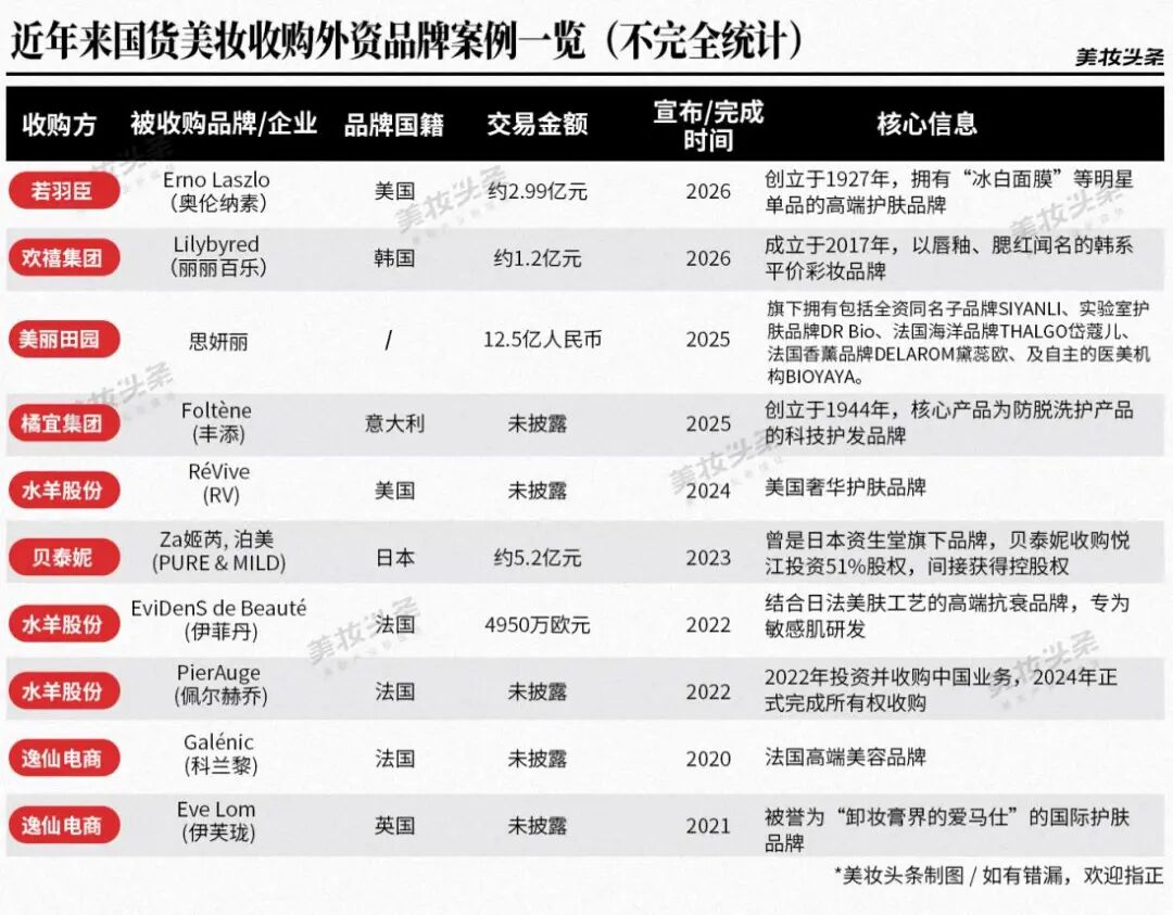 这同样是近年来中国美妆企业收购外资品牌的关键目标之一。为了更好地呈现这一情况,美妆头条梳理了近年来具有代表性的收购案例。