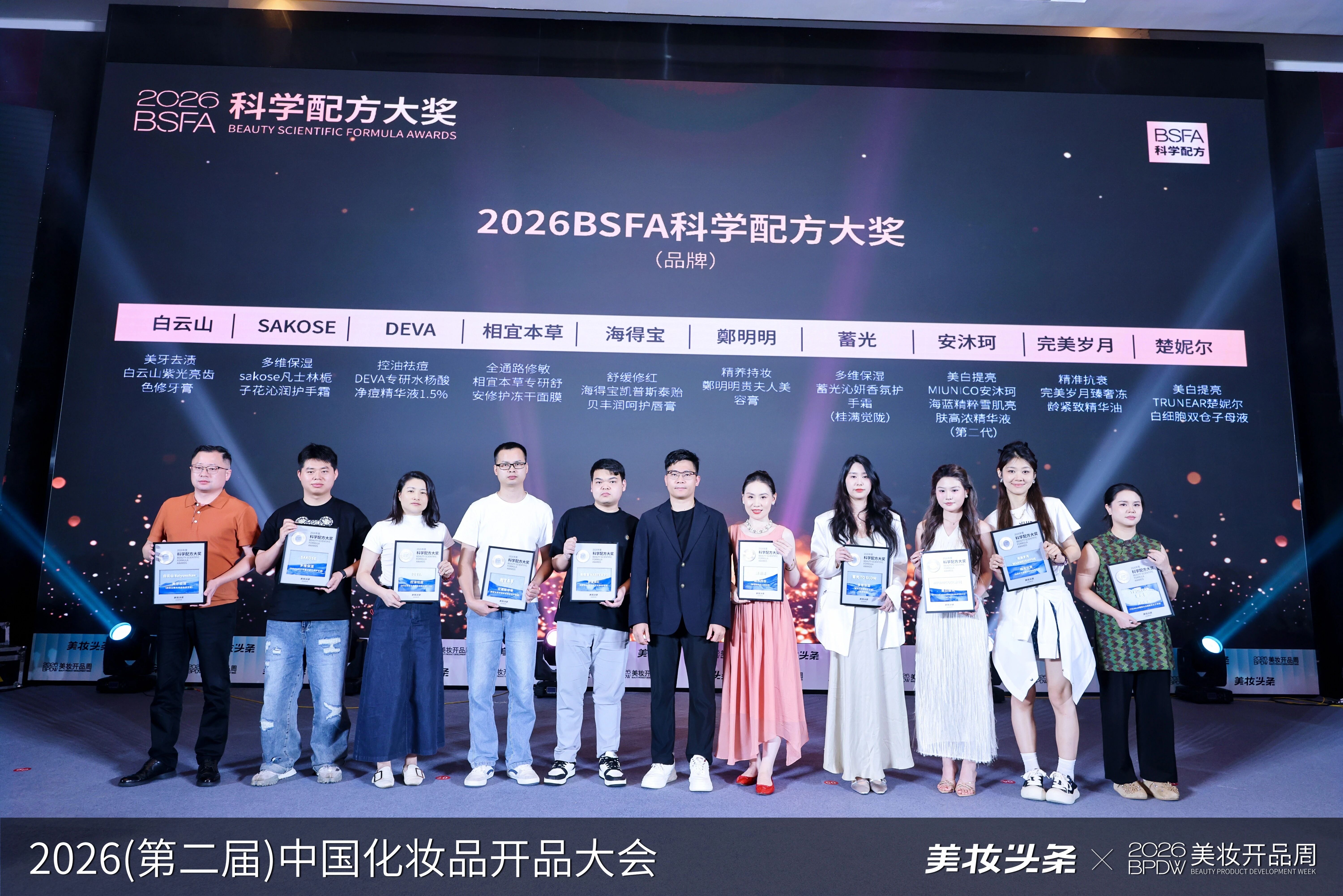 两天的内容分享,涵盖三大独家首发、20+行业大咖论道;现场还设立了30+科学开品展,以及品牌科学开品新品展示区;晚宴现场盛大举行“2026BSFA科学配方大奖”颁奖盛典。一场大会,全方位拆解从趋势洞察到爆品落地的科学开品底层逻辑,与1000+美妆产品人一起共探美妆开品新未来!