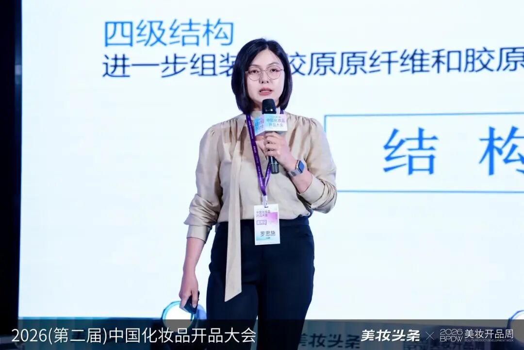 创尔生物首席科学家办公室主任罗思施博士以《胶原双轨驱动,原料到产品的全链路设计》为题,分享了企业在活性胶原领域二十余年的技术积淀与最新突破。