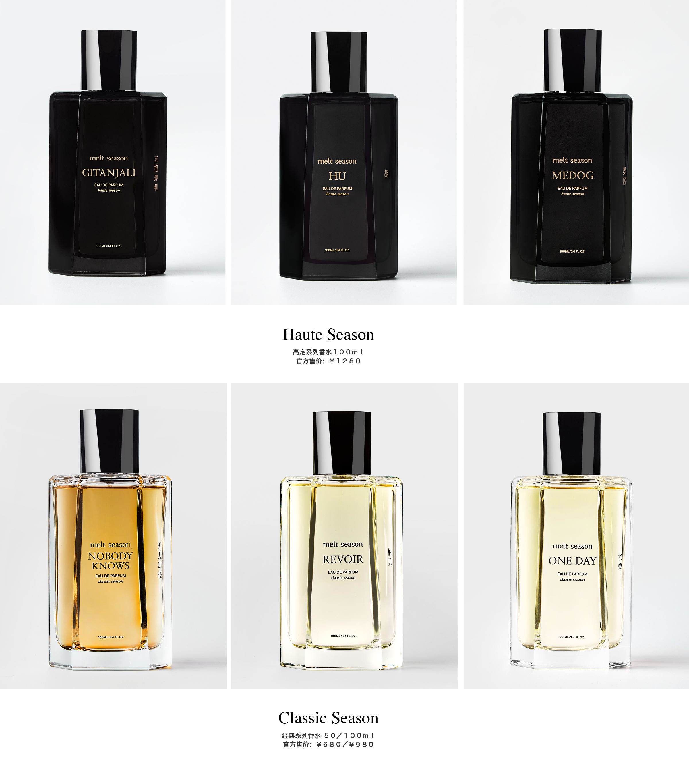 截至目前,「melt season」共推出2个系列共6款香水:100ml高定系列香水,官方售价1280元;100ml经典系列香水,官方售价980元以及50ml经典系列香水,售价680元。