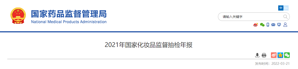 3、国家药监局发布《2021年国家化妆品监督抽检年报》